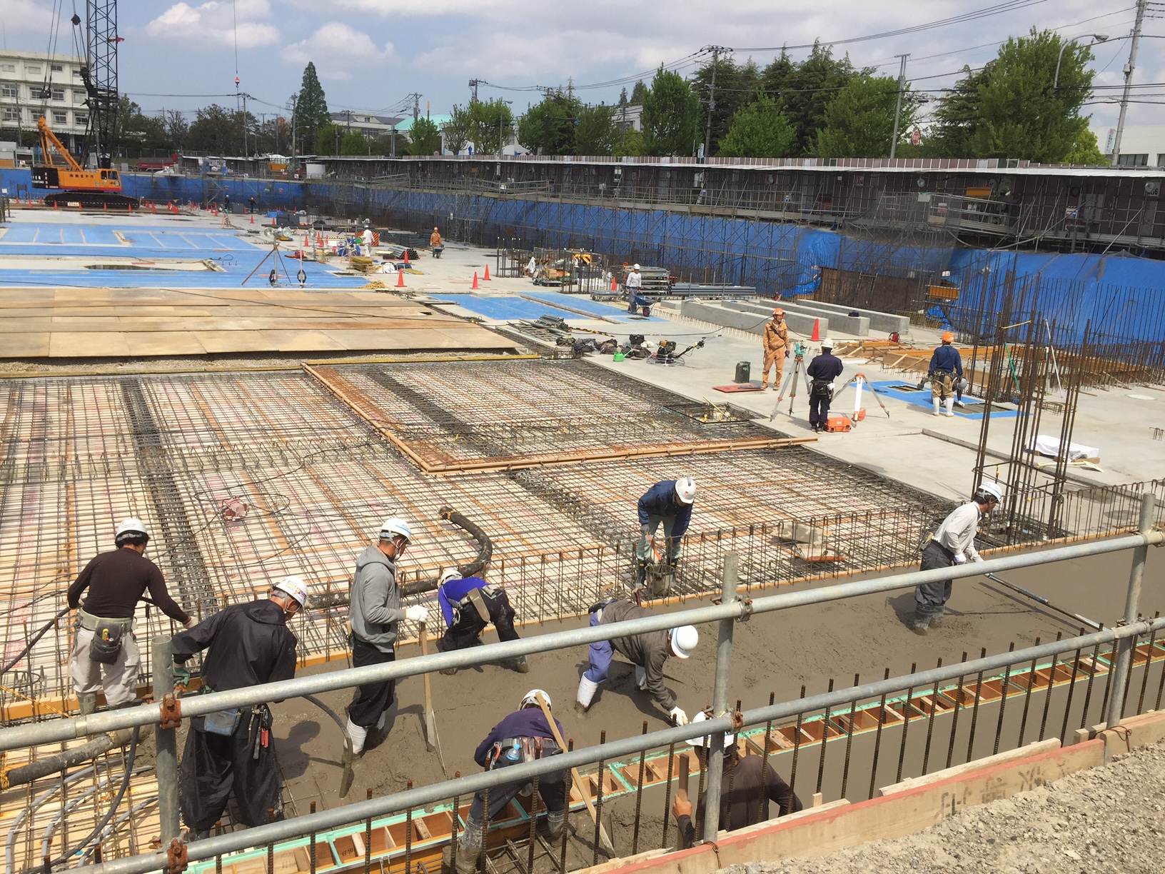 レディーミクストコンクリートにアルファー・ゾル-4を混ぜ込み、コンクリートの耐久性を上げる工法。