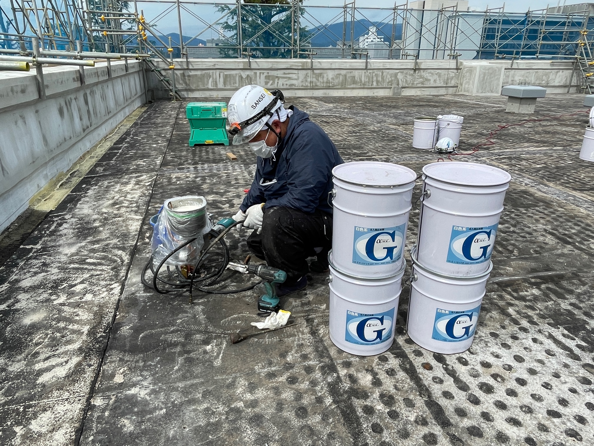 ビル屋上の防水層や防水層の修復と再生を目的とした工法です。