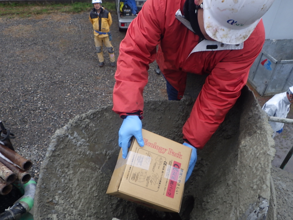 レディーミクストコンクリートにアルファー・ゾル-4を混ぜ込み、コンクリートの耐久性を上げる工法。 生コンの水とアルファー・ゾル-4を置き換えることにより、吸水率を下げ、酸や塩化物などをコンクリート中に侵入させず、中性化を抑制します。
