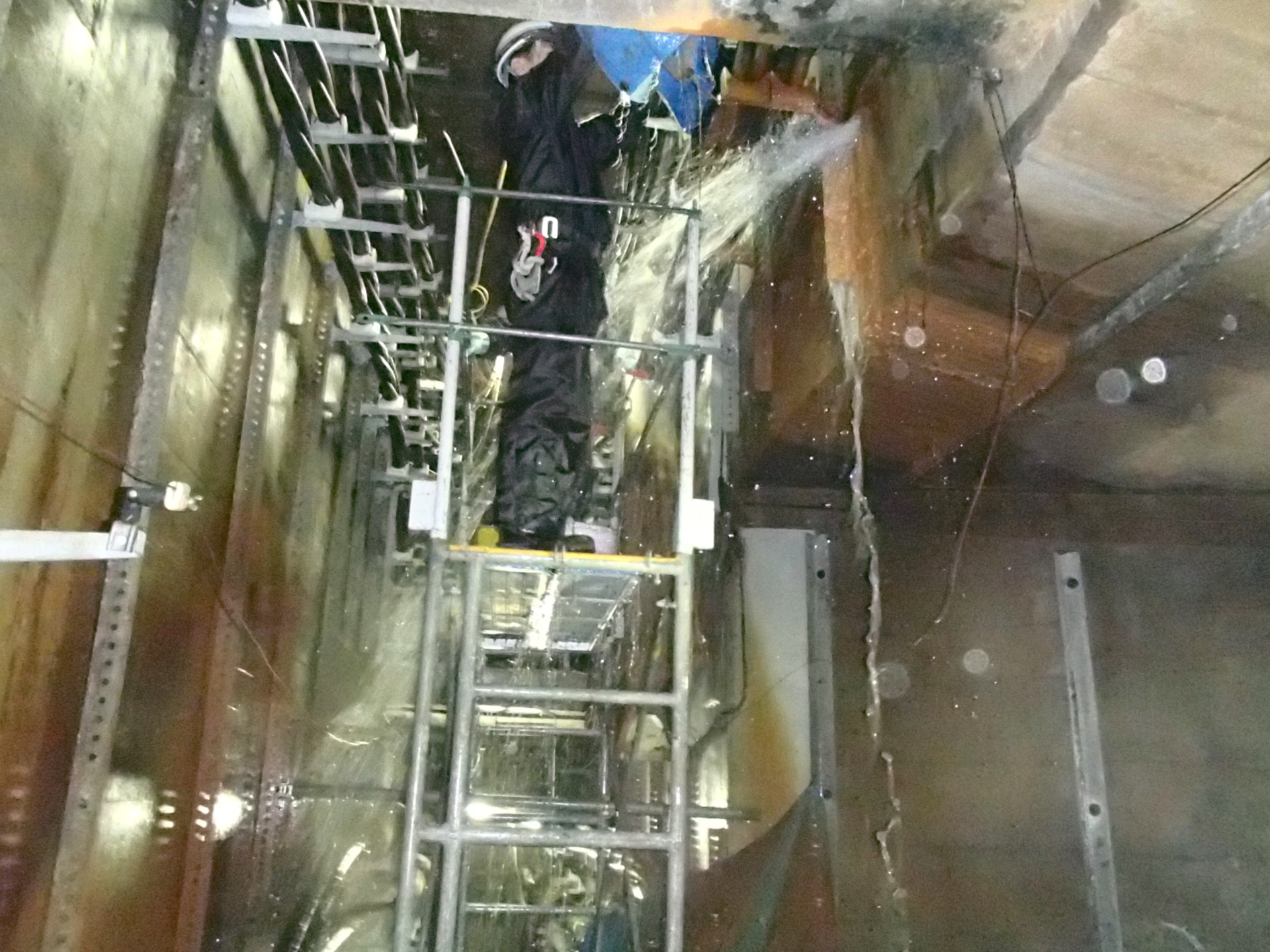 STTG工法とは「SUPER(優れた)、 TWO TOP(2液性の)、 GROUT工法(クラック等をふさぐための注入技術)」の略であり、伸びや付着強度に優れた石油樹脂・アクリル系材料と吸水性ウレタンプレポリマーを含有する硬化促進剤を混合することにより地下トンネル、地下ピット、よう壁などのコンクリート構造物の打設継目、クラックなどからの漏水を確実に止水致します。 耐久性に優れ恒久的な止水効果を発揮するハイブリッドタイプの止水工法です。